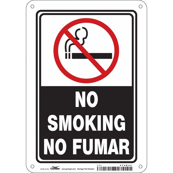 Safety Sign, 10" H, 7 in W, Horizontal Rectangle, English, Spanish, 474D44SKU G5094840Categories SafetyDescription Safety Sign, Horizontal Rectangle, Number of Printed Sides 1, English, Spanish, Sign Format Other Format, Sign Legend No Smoking/No Fumar, Sign Legend Background Color Black, White, Sign Legend Style Symbol and TextgraingerSKU: 474D44, mscSKU: , zoro_no: G5094840, mongo_id: 65bbea5222d7a989a99a860f