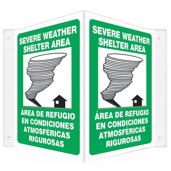 High Visibility Safety Sign, 14" W, 12" HSKU G5883223Categories SafetyDescription High Visibility Safety Sign, V-Shape Projection, Number of Printed Sides 1, English, Spanish, Sign Legend Severe Weather Shelter Area/ Area De Refugio En Condiciones Atmosfericas Rigurosas, Sign Legend Background Color Green, Sign Legend Style Symbol and TextgraingerSKU: 480Z90, mscSKU: , zoro_no: G5883223, mongo_id: 65bbea5222d7a989a99a8607