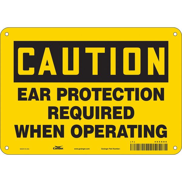 SKU G5549262Categories SafetyDescription Safety Sign, Vertical Rectangle, Number of Printed Sides 1, English, Sign Format Traditional OSHA, Sign Legend Ear Protection Required When Operating, Sign Legend Background Color Yellow, Sign Legend Style TextgraingerSKU: 465X80, mscSKU: , zoro_no: G5549262, mongo_id: 65bbea5222d7a989a99a85d9