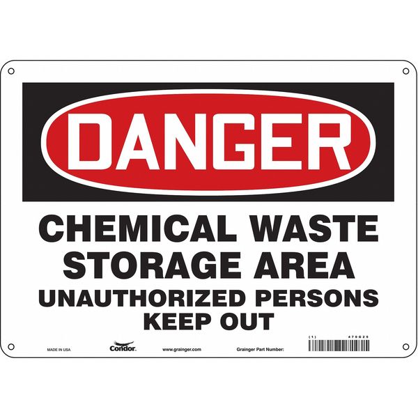 SKU G5354723Categories SafetyDescription Safety Sign, Horizontal Rectangle, Number of Printed Sides 1, English, Sign Format Traditional OSHA, Sign Legend Chemical Waste Storage Area Unauthorized Persons Keep Out, Sign Legend Background Color White, Sign Legend Style TextgraingerSKU: 470G25, mscSKU: , zoro_no: G5354723, mongo_id: 65bbea5222d7a989a99a85f2
