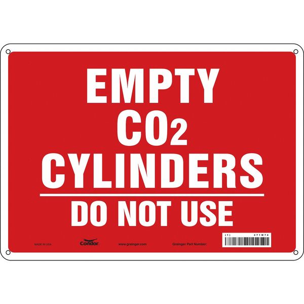 Safety Sign, 10 in Height, 14 in Width, Aluminum, Horizontal Rectangle, English, 471M74SKU G5359641Categories SafetyDescription Safety Sign, Horizontal Rectangle, Number of Printed Sides 1, English, Sign Format Other Format, Sign Legend Empty Co2 Cylinders Do Not Use, Sign Legend Background Color Red, Sign Legend Style TextgraingerSKU: 471M74, mscSKU: , zoro_no: G5359641, mongo_id: 65bbea5222d7a989a99a85ec