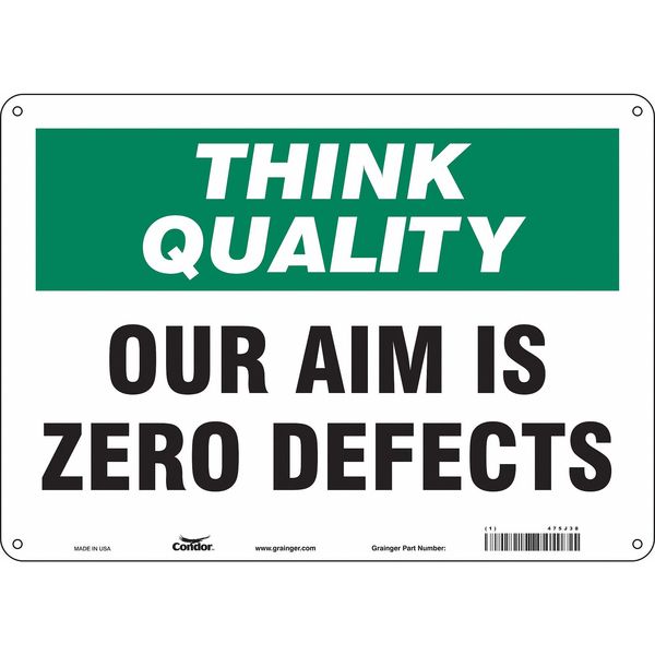 Safety Sign, 10 in Height, 14 in Width, Aluminum, Horizontal Rectangle, English, 475J38SKU G5166493Categories SafetyDescription Safety Sign, Horizontal Rectangle, Number of Printed Sides 1, English, Sign Format Other Format, Sign Legend Our Aim Is Zero Defects, Sign Legend Background Color Green, White, Sign Legend Style TextgraingerSKU: 475J38, mscSKU: , zoro_no: G5166493, mongo_id: 65bbea5222d7a989a99a8600