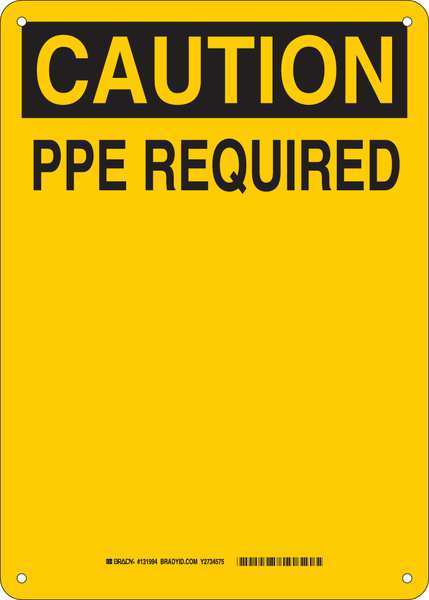 Caution Sign, 10" HX14" W, Plastic, Legend: PPE Required