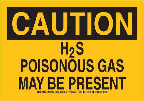 SKU G8640200Categories SafetyDescription Caution Sign, Sign Subject Matter Chemical, Gas or Hazardous Materials, Height 10 in, Width 14 in, Sign Material Plastic, Header Caution, Legend H2S Poisonous Gas May Be Present, Printed Language English, Sign Shape Rectangle$17.49 / eachWeb priceCaution Sign, 10 in H, 14 in W, Plastic, Rectangle, English, 124284SKU G8640200Categories SafetyDescription Caution Sign, Sign Subject Matter Chemical, Gas or Hazardous Materials, Height 10 in, Width 14 in, Sign Material Plastic, Header Caution, Legend H2S Poisonous Gas May Be Present, Printed Language English, Sign Shape Rectangle$17.49 / eachWeb price -
