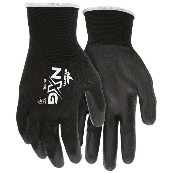 Polyurethane Coated Gloves, Palm Coverage, Black, XL, 12PK