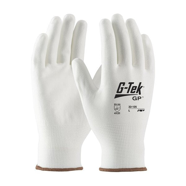 Polyurethane Coated Gloves, Palm Coverage, White, XL, 12PK