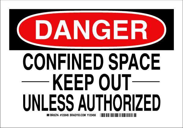 DANGER SIGN 7X10, Legend: Confined Space -Keep Out- Unless Authorized, 123649