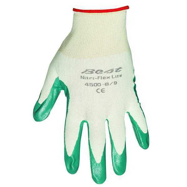 Nitrile Coated Gloves, Palm Coverage, Green, S, PR