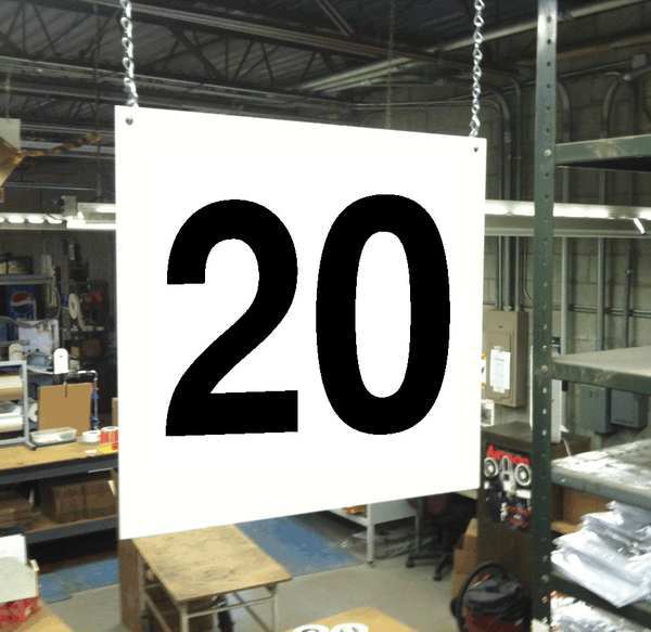 Hanging Aisle Sign, Legend 20SKU G2957285Categories SafetyDescription Hanging Aisle Sign, Background Color White, Character Color Black, Character Type Numbers, Die Cut No, Material PVC Board, Overall Height 12 in, Overall Width 12 ingraingerSKU: 23J635, mscSKU: , zoro_no: G2957285, mongo_id: 65bbea4122d7a989a99a2bfc