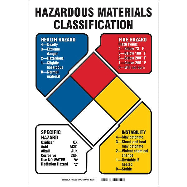 SKU G7454456Categories SafetyDescription NFPA Sign, Hazardous Materials Classification Health Hazard Fire Hazard Specific Hazard Reactivity, Plastic, Height 7 in, Width 10 in, Header No Header, Legend Style Symbol and Text, Language English, Mounting Style With Mounting Holes, Thickness 0.06 in, Sign Shape Rectangle, Operating Temp. Range -40 Degrees to 176 Degrees F, Retroreflective Grade Not RetroreflectivegraingerSKU: 29TT21, mscSKU: , zoro_no: G7454456, mongo_id: 65bbe9c522d7a989a9977b70