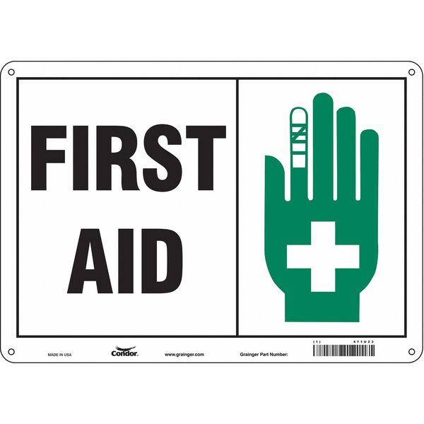 First Aid Sign, 14" Wx10" H, 0.032" Thick, 471U23