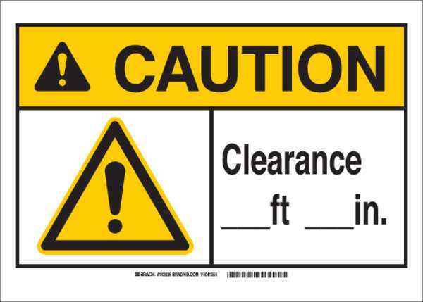 SKU G8639832Categories SafetyDescription Caution Sign, Sign Subject Matter Overhead Clearance, Height 7 In., Width 10 In., Sign Material Aluminum, Sign Mounting Style With Mounting Holes, Header Caution, Legend Clearance Ft In, Printed Language English, Sign Shape Rectangle$18.56 / eachWeb priceCaution Sign, 10"W, Alumn, Clearance", 143934SKU G8639832Categories SafetyDescription Caution Sign, Sign Subject Matter Overhead Clearance, Height 7 In., Width 10 In., Sign Material Aluminum, Sign Mounting Style With Mounting Holes, Header Caution, Legend Clearance Ft In, Printed Language English, Sign Shape Rectangle$18.56 / eachWeb price -