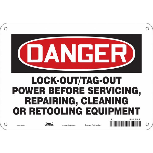$25.19 / eachWeb priceSafety Sign, 10 in Height, 14 in Width, Aluminum, Horizontal Rectangle, English, 469M07SKU G5064390Categories SafetyDescription Safety Sign, Horizontal Rectangle, Number of Printed Sides 1, English, Sign Format Traditional OSHA, Sign Legend Lock-Out/Tag-Out Power Before Servicing, Repairing, Cleaning Or Retooling Equipment, Sign Legend Background Color White, Sign Legend Style TextgraingerSKU: 469M07, mscSKU: , zoro_no: G5064390, mongo_id: 65bbe83422d7a989a98df95e
