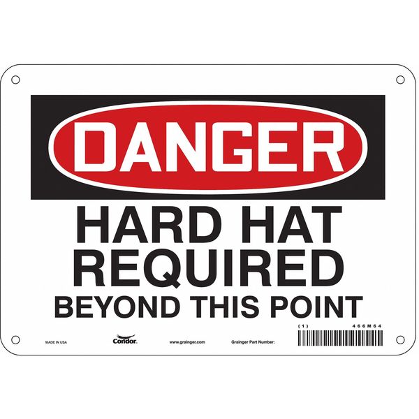 $18.74 / eachWeb priceSafety Sign, 7 in Height, 10 in Width, Aluminum, Vertical Rectangle, English, 466M64SKU G5852152Categories SafetyDescription Safety Sign, Vertical Rectangle, Number of Printed Sides 1, English, Sign Format Traditional OSHA, Sign Legend Hard Hat Required Beyond This Point, Sign Legend Background Color White, Sign Legend Style TextgraingerSKU: 466M64, mscSKU: , zoro_no: G5852152, mongo_id: 65bbe83422d7a989a98df95a