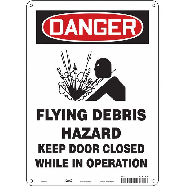 Safety Sign, 14 in Height, 10 in Width, Aluminum, Vertical Rectangle, English, 471X88SKU G5811972Categories SafetyDescription Safety Sign, Vertical Rectangle, Number of Printed Sides 1, English, Sign Format Traditional OSHA, Sign Legend Flying Debris Hazard Keep Door Closed While In Operation, Sign Legend Background Color White, Sign Legend Style Symbol and TextgraingerSKU: 471X88, mscSKU: , zoro_no: G5811972, mongo_id: 65bbe9fd22d7a989a998bc2c