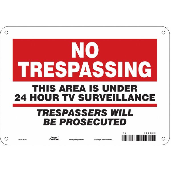 SKU G5234971Categories SafetyDescription Security Sign, Vertical Rectangle, Number of Printed Sides 1, English, Sign Format Other Format, Sign Legend This Area Is Under 24 Hour Tv Surveillance Trespassers Will Be Prosecuted, Sign Legend Background Color Red, White, Sign Legend Style TextgraingerSKU: 453N59, mscSKU: , zoro_no: G5234971, mongo_id: 65bbe9fd22d7a989a998bcee