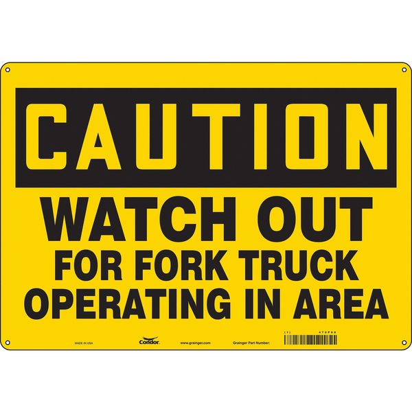 SKU G5844699Categories SafetyDescription Safety Sign, Horizontal Rectangle, Number of Printed Sides 1, English, Sign Format Traditional OSHA, Sign Legend Watch Out For Fork Truck Operating In Area, Sign Legend Background Color Yellow, Sign Legend Style TextgraingerSKU: 476P68, mscSKU: , zoro_no: G5844699, mongo_id: 65bbe9fd22d7a989a998bd03