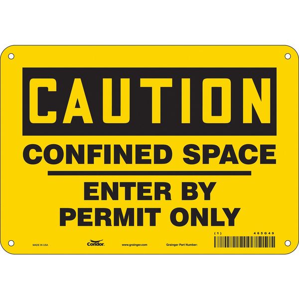 Safety Sign, 7 in Height, 10 in Width, Aluminum, Vertical Rectangle, English, 465G49SKU G5282818Categories SafetyDescription Safety Sign, Vertical Rectangle, Number of Printed Sides 1, English, Sign Format Traditional OSHA, Sign Legend Confined Space Enter By Permit Only, Sign Legend Background Color Yellow, Sign Legend Style TextgraingerSKU: 465G49, mscSKU: , zoro_no: G5282818, mongo_id: 65bbe9d322d7a989a997d887