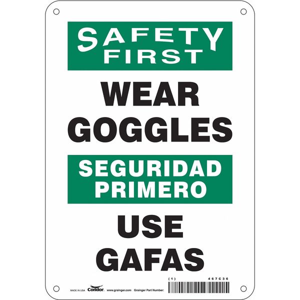 Safety Sign, 10 in Height, 7 in Width, Aluminum, Horizontal Rectangle, English, Spanish, 467C36SKU G5902893Categories SafetyDescription Safety Sign, Horizontal Rectangle, Number of Printed Sides 1, English, Spanish, Sign Format Traditional OSHA, Sign Legend Wear Goggles/Use Gafas, Sign Legend Background Color White, Sign Legend Style TextgraingerSKU: 467C36, mscSKU: , zoro_no: G5902893, mongo_id: 65bbe9d322d7a989a997d82a