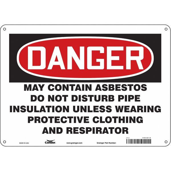 SKU G5792838Categories SafetyDescription Safety Sign, Horizontal Rectangle, Number of Printed Sides 1, English, Sign Format Traditional OSHA, Sign Legend May Contain Asbestos Do Not Disturb Pipe Insulation Unless Wearing Protective Clothing And Respirator, Sign Legend Background Color White, Sign Legend Style TextgraingerSKU: 464Z12, mscSKU: , zoro_no: G5792838, mongo_id: 65bbe9d322d7a989a997d7f3