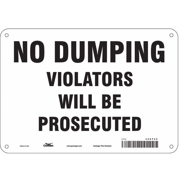 Safety Sign, 7 in Height, 10 in Width, Polyethylene, Vertical Rectangle, English, 468T65SKU G5131380Categories SafetyDescription Safety Sign, Vertical Rectangle, Number of Printed Sides 1, English, Sign Legend No Dumping Violators Will Be Prosecuted, Sign Legend Background Color White, Sign Legend Style TextgraingerSKU: 468T65, mscSKU: , zoro_no: G5131380, mongo_id: 65bbe9d322d7a989a997d8a6
