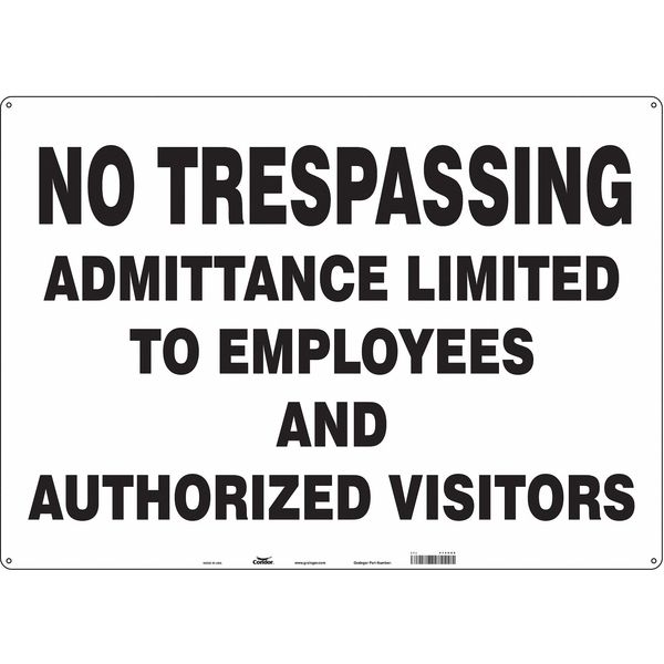 Safety Sign, 20 in H, 28 in W, Aluminum, Horizontal Rectangle, English, 473H60SKU G5576973Categories SafetyDescription Safety Sign, Horizontal Rectangle, Number of Printed Sides 1, English, Sign Format Other Format, Sign Legend No Trespassing Admittance Limited To Employees And Authorized Visitors, Sign Legend Background Color White, Sign Legend Style TextgraingerSKU: 473H60, mscSKU: , zoro_no: G5576973, mongo_id: 65bbe9d322d7a989a997d7bc