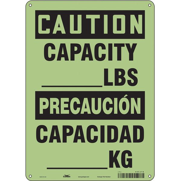 SKU G6289670Categories SafetyDescription Safety Sign, Vertical Rectangle, Number of Printed Sides 1, English, Spanish, Sign Format Traditional OSHA, Sign Legend Capacity _______ Lbs./Capacidad _______ Kg., Sign Legend Background Color Yellow, Sign Legend Style TextgraingerSKU: 485J78, mscSKU: , zoro_no: G6289670, mongo_id: 65bbe9d322d7a989a997d78c