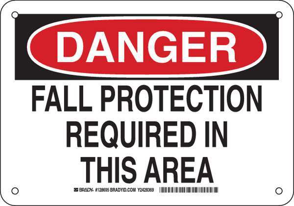 Danger Sign 7X10, Legend: Fall Protection Required In This Area