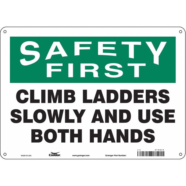 SKU G5885210Categories SafetyDescription Safety Sign, Horizontal Rectangle, Number of Printed Sides 1, English, Sign Format Traditional OSHA, Sign Legend Climb Ladders Slowly And Use Both Hands, Sign Legend Background Color White, Sign Legend Style TextgraingerSKU: 479H45, mscSKU: , zoro_no: G5885210, mongo_id: 65bbe9d322d7a989a997d80b