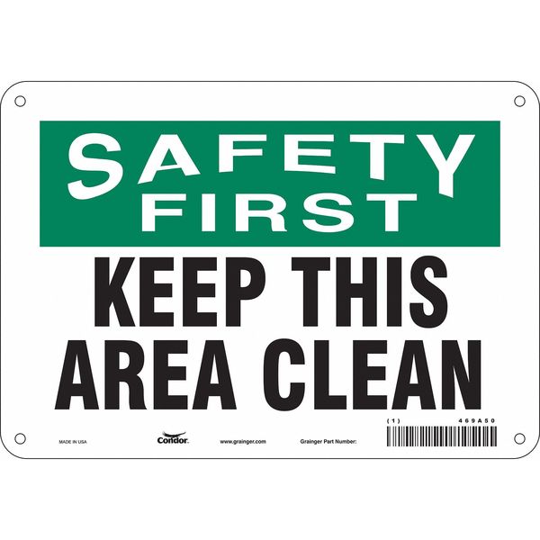 SKU G5265099Categories SafetyDescription Safety Sign, Vertical Rectangle, Number of Printed Sides 1, English, Sign Format Traditional OSHA, Sign Legend Keep This Area Clean, Sign Legend Background Color White, Sign Legend Style TextgraingerSKU: 469A50, mscSKU: , zoro_no: G5265099, mongo_id: 65bbe9d322d7a989a997d7a2