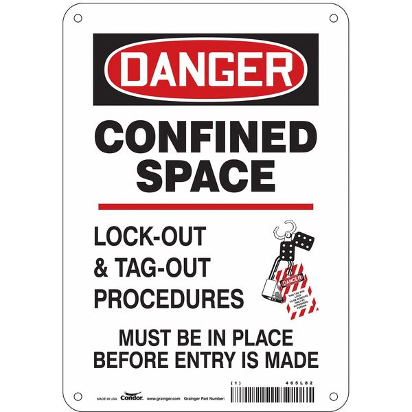 Safety Sign, 10 in Height, 7 in Width, Aluminum, Horizontal Rectangle, English, 465L82SKU G5645591Categories SafetyDescription Safety Sign, Horizontal Rectangle, Number of Printed Sides 1, English, Sign Format Traditional OSHA, Sign Legend Confined Space Lock-Out & Tag-Out Procedures Must Be In Place Before Entry Is Made, Sign Legend Background Color White, Sign Legend Style Symbol and TextgraingerSKU: 465L82, mscSKU: , zoro_no: G5645591, mongo_id: 65bbe9d322d7a989a997d680