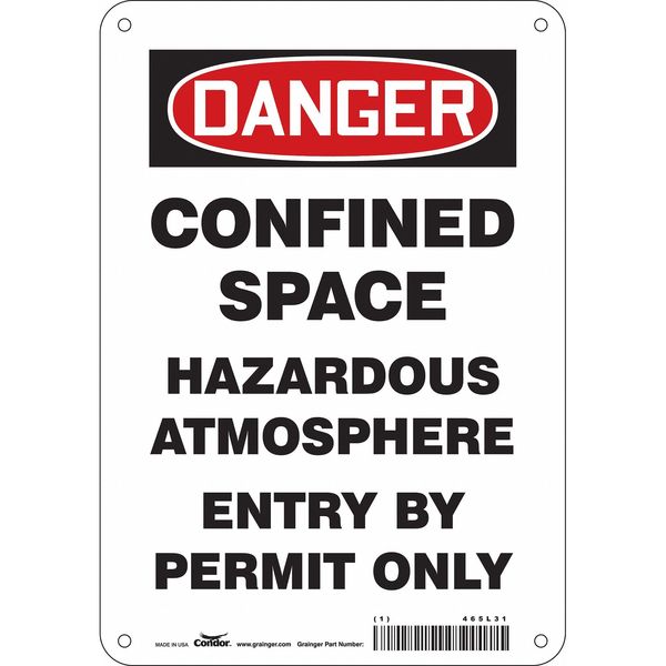 Safety Sign, 10 in Height, 7 in Width, Aluminum, Horizontal Rectangle, English, 465L31SKU G5871658Categories SafetyDescription Safety Sign, Horizontal Rectangle, Number of Printed Sides 1, English, Sign Format Traditional OSHA, Sign Legend Confined Space Hazardous Atmosphere Entry By Permit Only, Sign Legend Background Color White, Sign Legend Style TextgraingerSKU: 465L31, mscSKU: , zoro_no: G5871658, mongo_id: 65bbe9d322d7a989a997d6f4