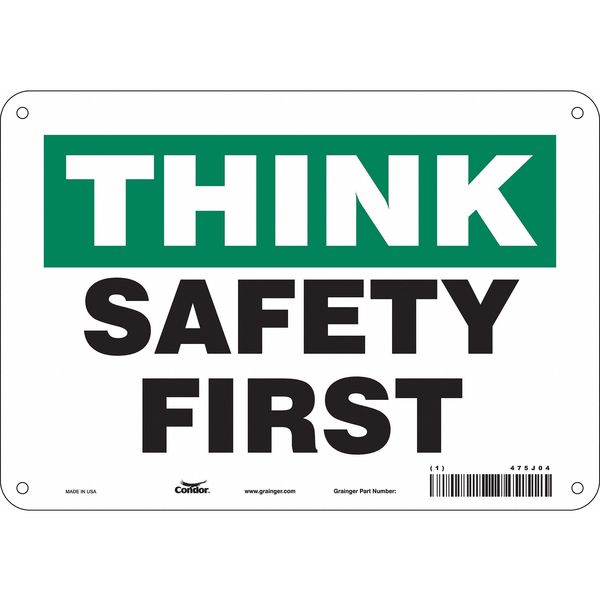 Safety Sign, 7 in Height, 10 in Width, Aluminum, Vertical Rectangle, English, 475J04SKU G5229907Categories SafetyDescription Safety Sign, Vertical Rectangle, Number of Printed Sides 1, English, Sign Format Other Format, Sign Legend Safety First, Sign Legend Background Color Green, White, Sign Legend Style TextgraingerSKU: 475J04, mscSKU: , zoro_no: G5229907, mongo_id: 65bbe9d322d7a989a997d6ed