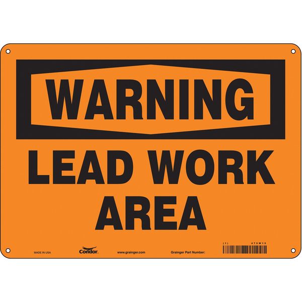SKU G5790710Categories SafetyDescription Safety Sign, Horizontal Rectangle, Number of Printed Sides 1, English, Sign Format Traditional OSHA, Sign Legend Lead Work Area, Sign Legend Background Color Orange, Sign Legend Style TextgraingerSKU: 475W15, mscSKU: , zoro_no: G5790710, mongo_id: 65bbe9d322d7a989a997d733