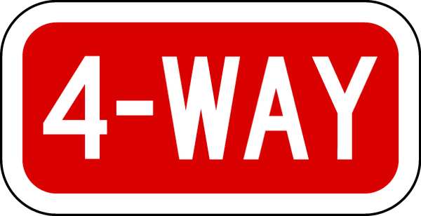 4-Way Traffic Sign, 6 in H, 12 in W, Aluminum, Horizontal Rectangle, English, R1-3-4-12DA