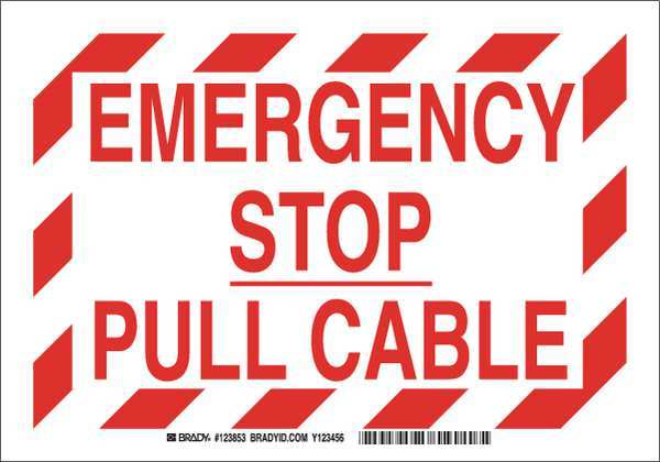 SKU G8458620Categories SafetyDescription Safety Sign, Sign Subject Matter Machine and Operational, Height 10 In., Width 14 In., Sign Material Plastic, Sign Mounting Style With Mounting Holes, Header No Header, Legend Emergency Stop Pull Cable, Printed Language English, Sign Shape Rectangle$17.49 / eachWeb priceSafety Sign, 10X14", Red/White, Sign Shape: Rectangle, 123855SKU G8458620Categories SafetyDescription Safety Sign, Sign Subject Matter Machine and Operational, Height 10 In., Width 14 In., Sign Material Plastic, Sign Mounting Style With Mounting Holes, Header No Header, Legend Emergency Stop Pull Cable, Printed Language English, Sign Shape Rectangle$17.49 / eachWeb price -