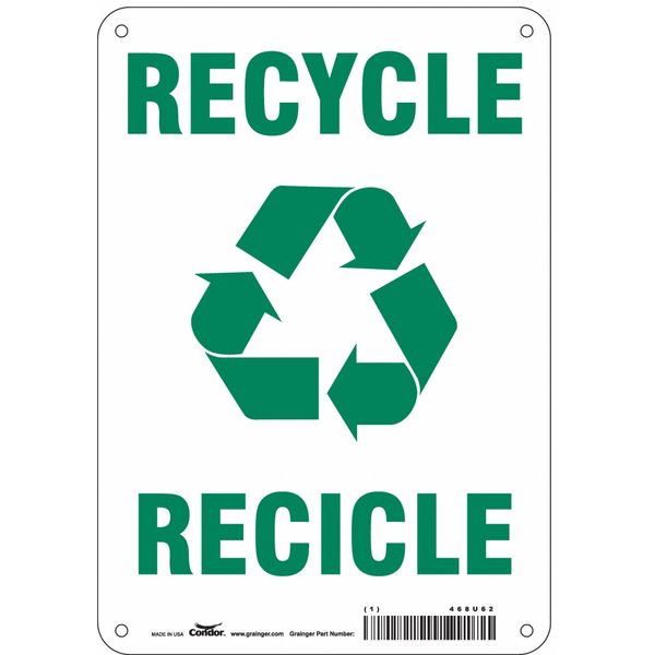 SKU G5355362Categories SafetyDescription Safety Sign, Horizontal Rectangle, Number of Printed Sides 1, English, Spanish, Sign Legend Recycle/Recicle, Sign Legend Background Color White, Sign Legend Style Symbol and TextgraingerSKU: 468U62, mscSKU: , zoro_no: G5355362, mongo_id: 65bbea2822d7a989a999a322