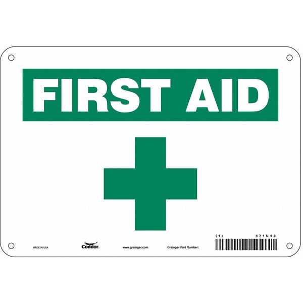 First Aid Sign, 10" W x 7" H, 0.032" Thick, 471U48SKU G5232180Categories SafetyDescription First Aid Sign, Vertical Rectangle, Number of Printed Sides 1, English, Sign Format Other Format, Sign Legend First Aid, Sign Legend Background Color Green, White, Sign Legend Style Symbol and TextgraingerSKU: 471U48, mscSKU: , zoro_no: G5232180, mongo_id: 65bbea2822d7a989a999a319