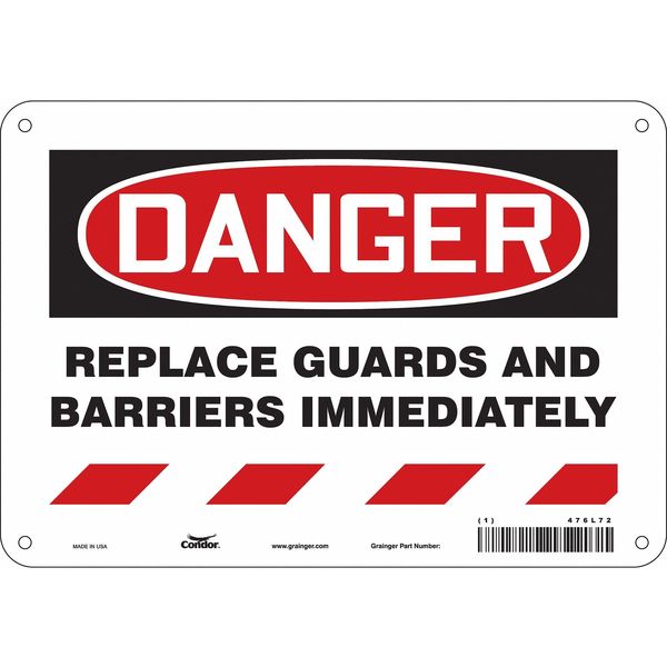 Safety Sign, 7 in Height, 10 in Width, Aluminum, Vertical Rectangle, English, 476L72SKU G5813092Categories SafetyDescription Safety Sign, Vertical Rectangle, Number of Printed Sides 1, English, Sign Format Traditional OSHA, Sign Legend Replace Guards And Barriers Immediately, Sign Legend Background Color White, Sign Legend Style Symbol and TextgraingerSKU: 476L72, mscSKU: , zoro_no: G5813092, mongo_id: 65bbea2822d7a989a999a26c
