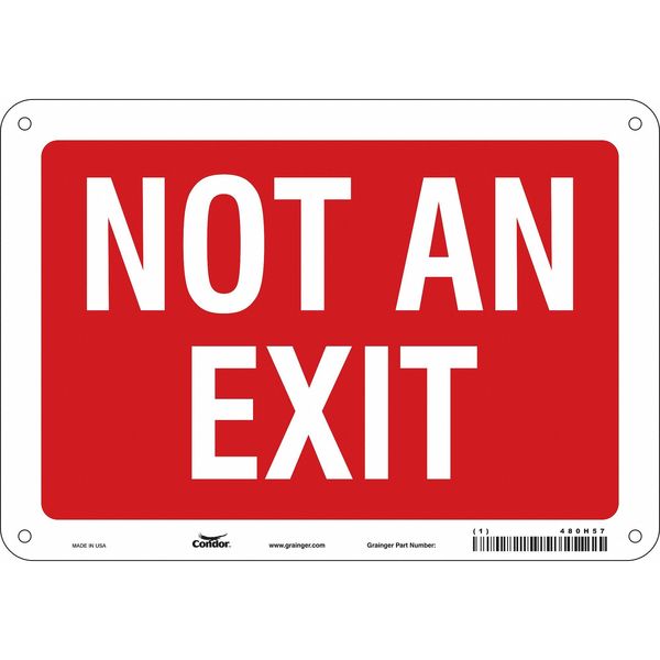 Safety Sign, 7 in x 10 in, AluminumSKU G5824408Categories SafetyDescription Safety Sign, Vertical Rectangle, Number of Printed Sides 1, English, Sign Legend Not An Exit, Sign Legend Background Color Red, White, Sign Legend Style TextgraingerSKU: 480H57, mscSKU: , zoro_no: G5824408, mongo_id: 65bbea2822d7a989a999a1f7