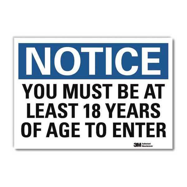 SKU G2755947Categories SafetyDescription Notice Sign, Horizontal Rectangle, Number of Printed Sides 1, English, Sign Format Traditional OSHA, Sign Legend You Must Be At Least 18 Years Of Age To Enter, Sign Legend Background Color White, Sign Legend Style TextgraingerSKU: 34JZ39, mscSKU: , zoro_no: G2755947, mongo_id: 65bbea2822d7a989a9999c30