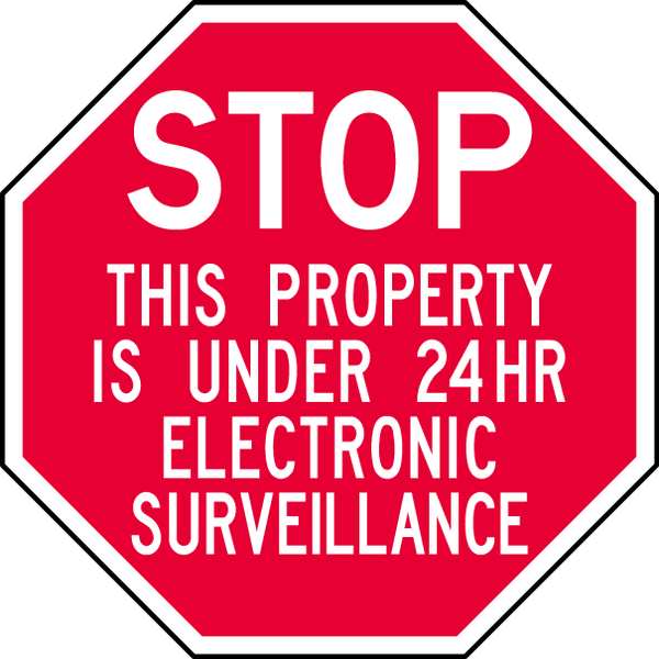SKU G3819715Categories SafetyDescription Informational Sign, Octagon, Number of Printed Sides 1, English, Sign Format Other Format, Sign Legend This Property Is Under 24 Hr Electronic Surveillance, Sign Legend Background Color Red, Sign Legend Style TextgraingerSKU: 8TWJ2, mscSKU: , zoro_no: G3819715, mongo_id: 65bbea2822d7a989a9999e81