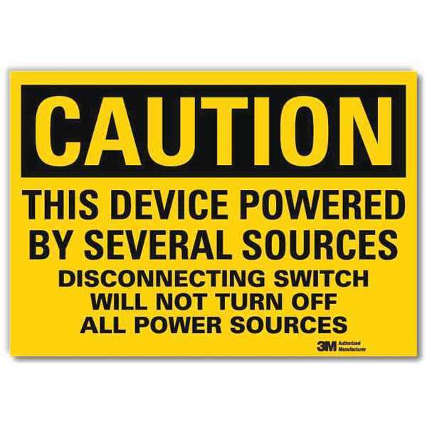 SKU G2718129Categories SafetyDescription Safety Sign, Horizontal Rectangle, Number of Printed Sides 1, English, Sign Format Traditional OSHA, Sign Legend This Device Powered By Several Sources Disconnecting Switch Will Not Turn Off All Power Sources, Sign Legend Background Color Yellow, Sign Legend Style TextgraingerSKU: 35JZ51, mscSKU: , zoro_no: G2718129, mongo_id: 65bbea2822d7a989a9999ea0