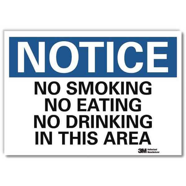 SKU G2759596Categories SafetyDescription Notice Sign, Vertical Rectangle, Number of Printed Sides 1, English, Sign Format Traditional OSHA, Sign Legend No Smoking No Eating No Drinking In This Area, Sign Legend Background Color White, Sign Legend Style TextgraingerSKU: 34JT81, mscSKU: , zoro_no: G2759596, mongo_id: 65bbea2822d7a989a9999d2a