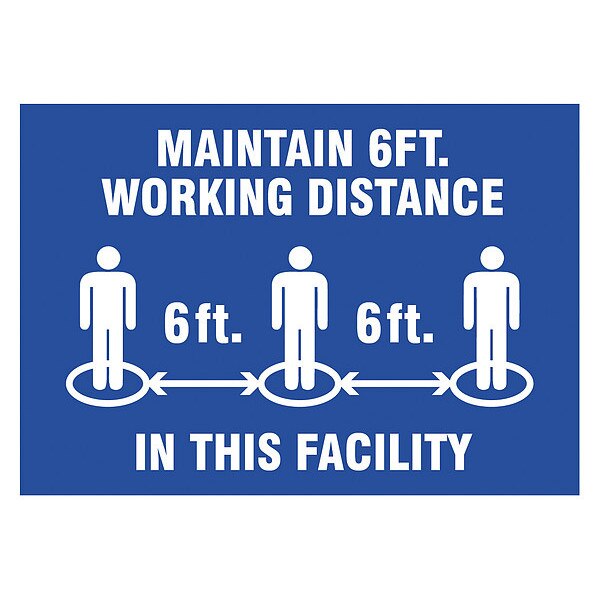 SKU G6674447Categories Adhesives, Epoxy & Sealants , SafetyDescription Adhesive Safety Sign, Sign Subject Matter Social Distancing, Height 7 in, Width 10 in, Sign Material Vinyl, Sign Mounting Style Adhesive Surface, Header No Header, Legend Maintain 6 Ft. Working Distance In This Facility, Printed Language EnglishgraingerSKU: , mscSKU: , zoro_no: G6674447, mongo_id: 65bbea2822d7a989a9999b60