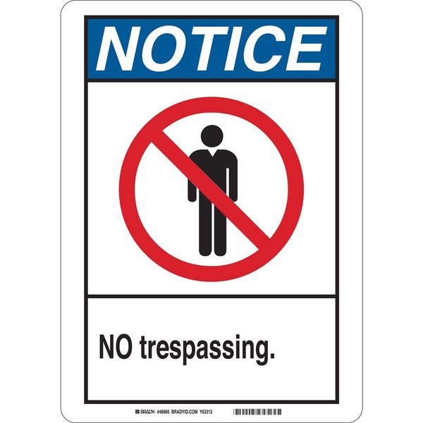 SKU G7418253Categories SafetyDescription Notice Sign, Sign Subject Matter Trespassing and Property, Height 14 in, Width 10 in, Sign Material Aluminum, Sign Mounting Style With Mounting Holes, Header Notice, Legend No Trespassing., Printed Language English, Sign Shape Rectangle$32.49 / eachWeb priceNotice Sign, 14X10 ", Aluminum, Height: 14"SKU G7418253Categories SafetyDescription Notice Sign, Sign Subject Matter Trespassing and Property, Height 14 in, Width 10 in, Sign Material Aluminum, Sign Mounting Style With Mounting Holes, Header Notice, Legend No Trespassing., Printed Language English, Sign Shape Rectangle$32.49 / eachWeb price -