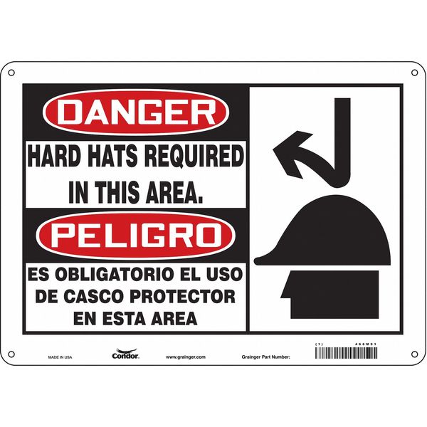 SKU G5101770Categories SafetyDescription Safety Sign, Horizontal Rectangle, Number of Printed Sides 1, English, Spanish, Sign Format Traditional OSHA, Sign Legend Hard Hats Required In This Area/Es Obligatorio El Uso De Casco Protector En Esta Area, Sign Legend Background Color White, Sign Legend Style Symbol and TextgraingerSKU: 466M91, mscSKU: , zoro_no: G5101770, mongo_id: 65bbe9ad22d7a989a996f352