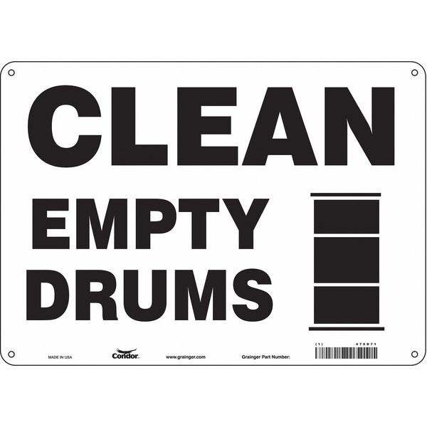 Safety Sign, 10 in Height, 14 in Width, Aluminum, Horizontal Rectangle, English, 470D71SKU G5187152Categories SafetyDescription Safety Sign, Horizontal Rectangle, Number of Printed Sides 1, English, Sign Format Other Format, Sign Legend Clean Empty Drums, Sign Legend Background Color White, Sign Legend Style Symbol and TextgraingerSKU: 470D71, mscSKU: , zoro_no: G5187152, mongo_id: 65bbe9ad22d7a989a996f340