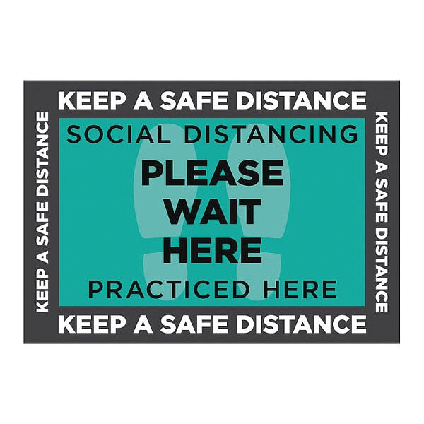 SKU G8335994Categories SafetyDescription Social Distance Floor Sign, Sign Subject Matter Social Distancing, Height 14 in, Width 20 in, Sign Material Vinyl, Sign Mounting Style Adhesive Surface, Header No Header, Legend Keep a Safe Distance Social Distancing Practiced Here Please Wait Here, Printed Language English, Sign Shape RectanglegraingerSKU: , mscSKU: , zoro_no: G8335994, mongo_id: 65bbe9ad22d7a989a996f589
