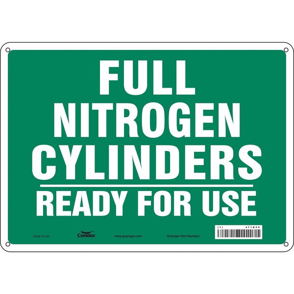 Safety Sign, 10 in Height, 14 in Width, Aluminum, Horizontal Rectangle, English, 471N29SKU G5058133Categories SafetyDescription Safety Sign, Horizontal Rectangle, Number of Printed Sides 1, English, Sign Format Other Format, Sign Legend Full Nitrogen Cylinders Ready For Use, Sign Legend Background Color Green, Sign Legend Style TextgraingerSKU: 471N29, mscSKU: , zoro_no: G5058133, mongo_id: 65bbe9ad22d7a989a996f1b9